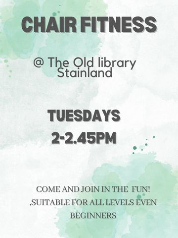 Chair fitness -a fun seated workout improving strength, flexibility & co ordination suitable for all levels & abilities. Followed by a warm drink, a natter & board games.