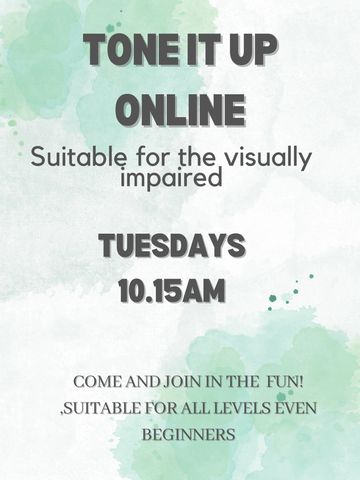 A simple to follow, 45 minute fun online workout, specifically designed for the visually impaired, but everyone welcome . Working on core strength, flexibility, coordination & strength. Suitable for all levels whether you think you are super fit, super unfit or somewhere in between.